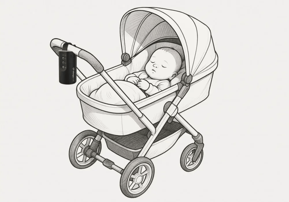 Sleepytroll baby rocker festes til din barnevogn, og gir en mild vugging som hjelper til med å berolige babyer og forlenge de daglige lurene. Den er bærbar og lett, noe som gjør den praktisk å bruke når du er ute og går.