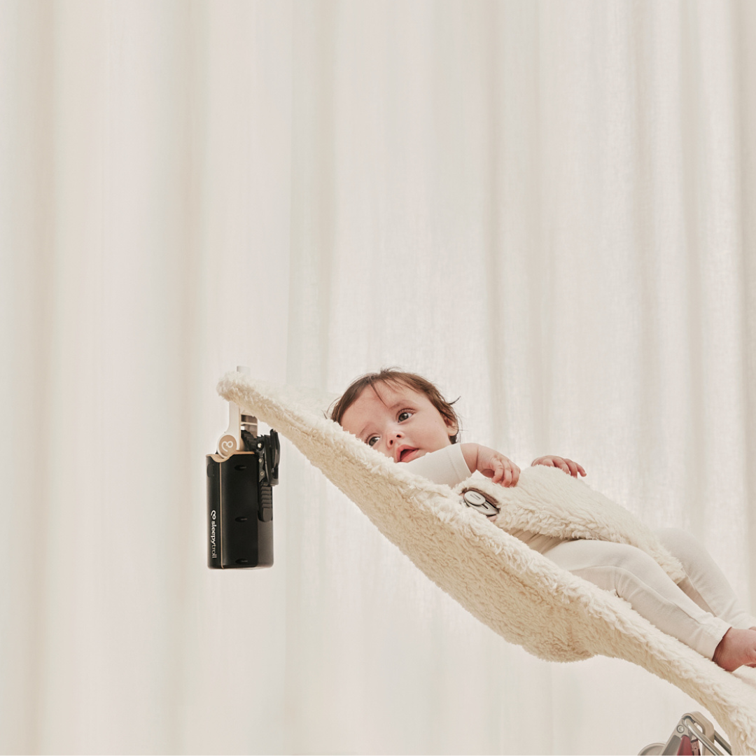 Beruhigt sich Ihr Baby durch Schaukelbewegungen? Kein Bedarf an teuren, automatischen Wippen dank des Sleepytroll Wippenadapters und dem Sleepytroll Baby Rocker.